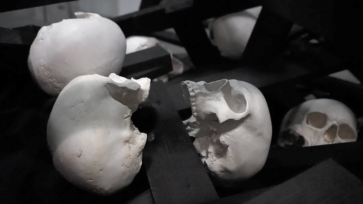 The Words, 2022, wood, ink, plaster, 600x300cm (dimentions variable), Installation view
