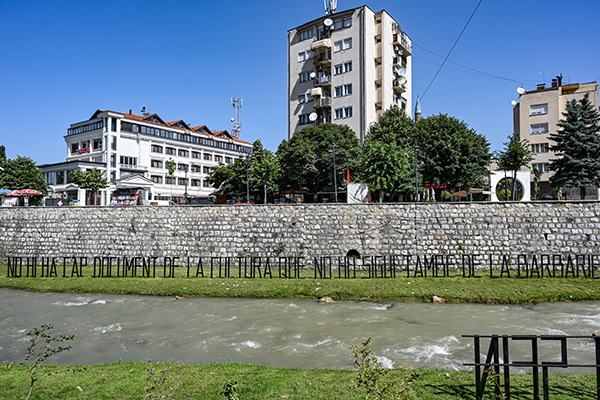The Grave, 2023, timber, ink, metallic structure, site-specific installation commissioned by the 4rth Autostrada Biennale, All Images Will DisappearOne Day, curated by Joanna Warsza  and Övül Ö. Durmuşoğlu  Prizren, Kosovo